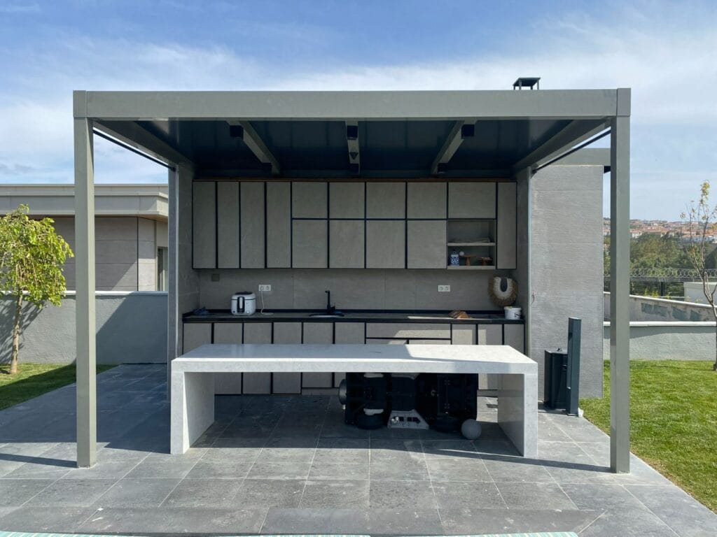 Alüminyum profiller ve motorlu mekanizmalarla üretilen pergola sistemleri paslanmaz yapısıyla uzun ömürlüdür ve minimum bakım gerektirir. Bu sayede yıllarca güvenle kullanılabilir.